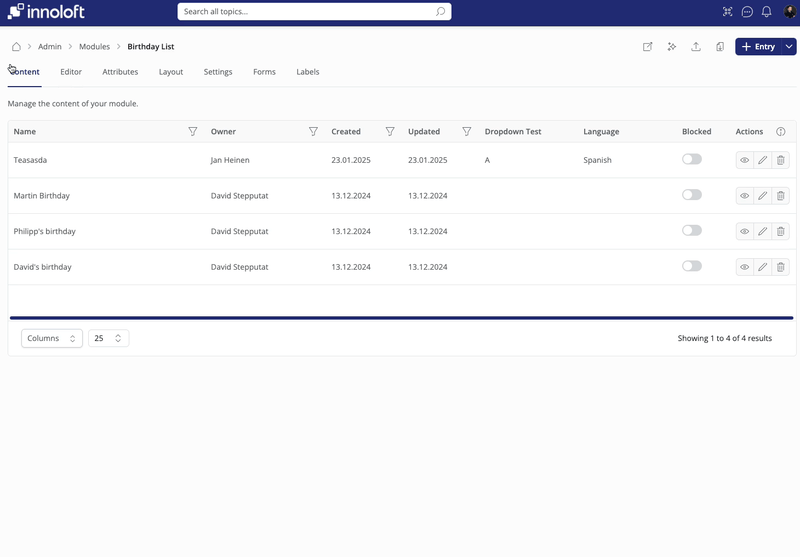 - Created Entries: All entries you've created in the module