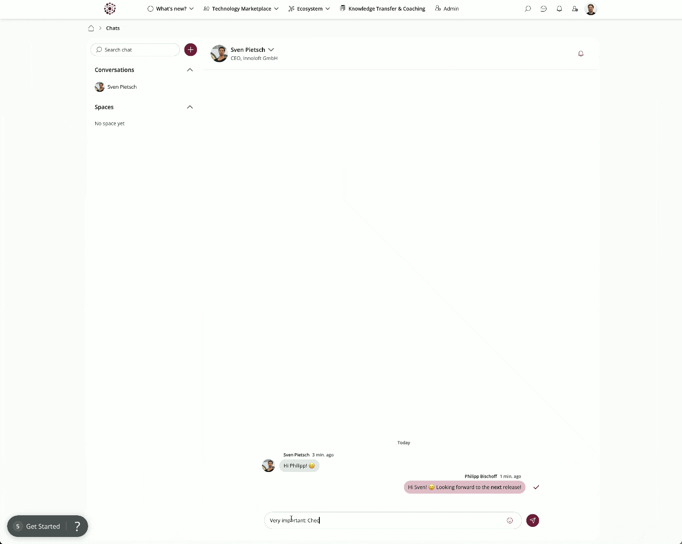 It's as simple as clicking on the "Contact" option in the user profile dropdown menu, located in the top right navigation. For premium and custom subscriptions, Innoloft will handle and process all contact requests, ensuring your users receive top-notch support. For other subscriptions, the contact mail from the general settings will be used.
