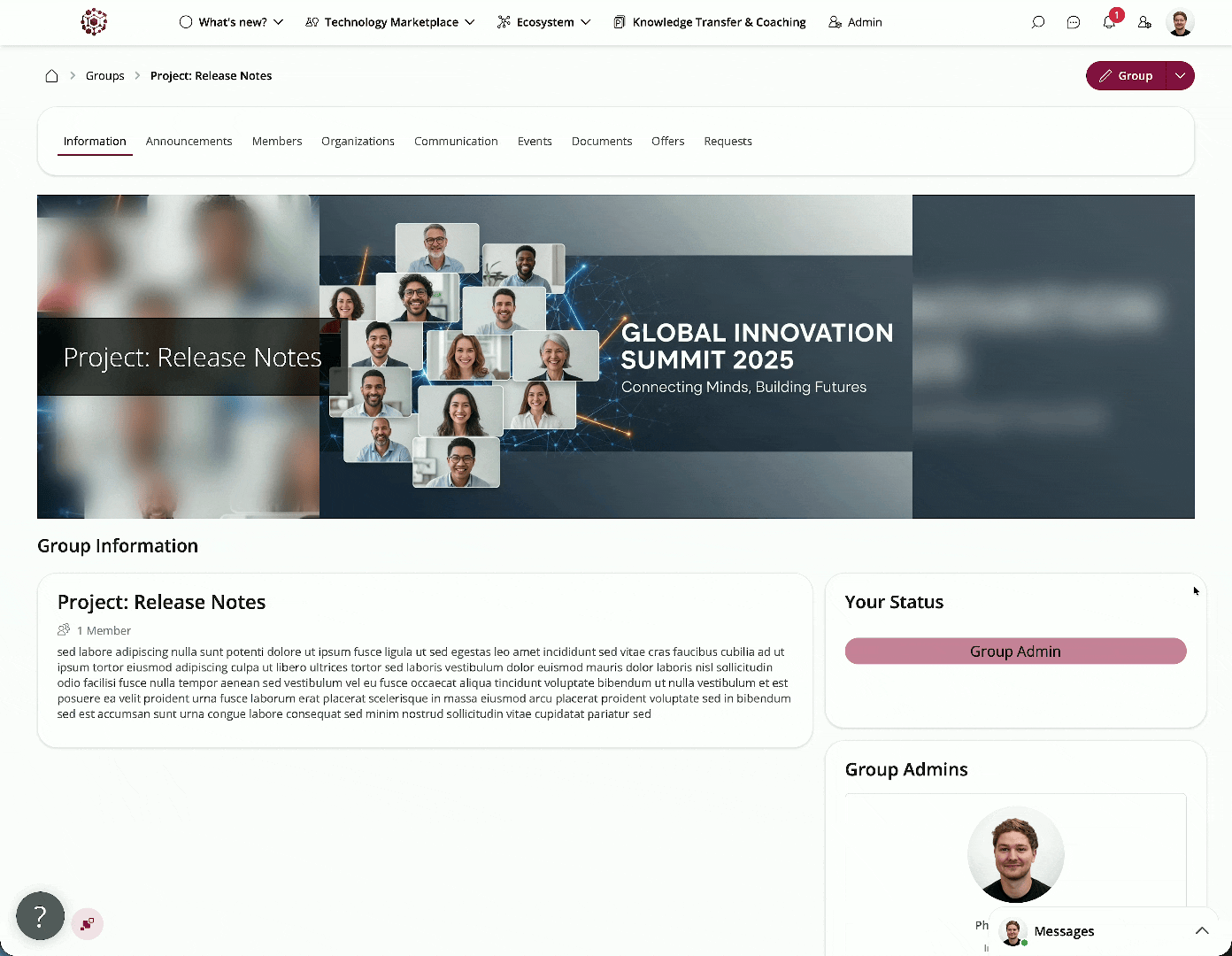 - Dedicated Announcement Space: A centralized location for sharing important updates, news, and information with all Group members.